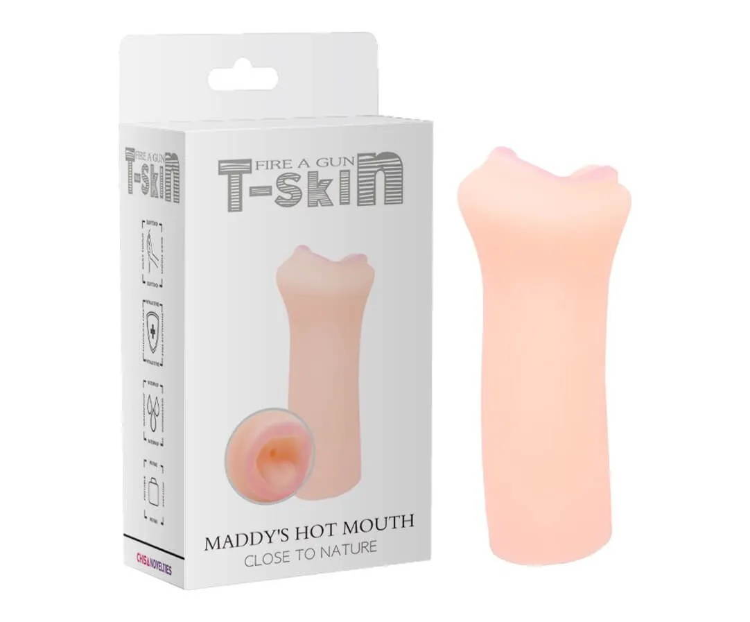 Мастурбатор Maddy's Hot Mouth из серии Fire a Gun от бренда Chisa Novelties сделан из нежного материала T-Skin телесного цвета в виде соблазнительного ротика с розовыми губками. Узкий канал с внутренним рельефом, который может растягиваться в длину и в ширину, плотно обхватит член, насыщенно стимулируя его. Материал мастурбатора T-Skin очень похож на настоящую кожу - он такой же нежный и мягкий и быстро принимает температуру тела. Благодаря реалистичному дизайну и материалу ощущения от мастурбации будут естественными. Размер Maddy's Hot Mouth очень компактен, поэтому его будет удобно держать одной рукой.