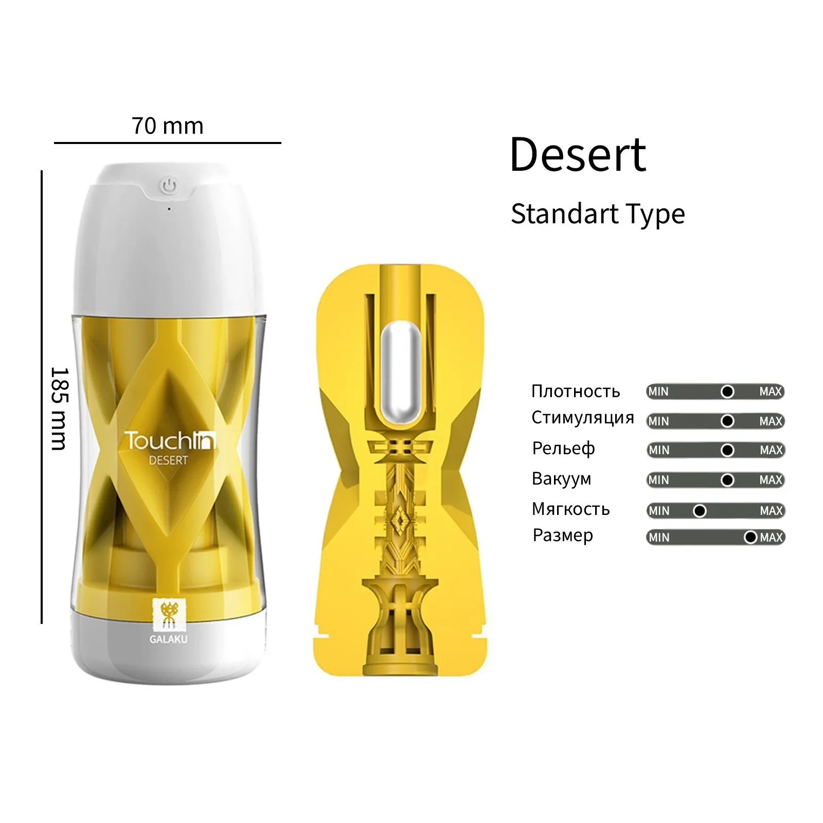 Мастурбатор GALAKU CUP Desert, с вибрацией, 20 режимов, перезаряжаемый, желтый