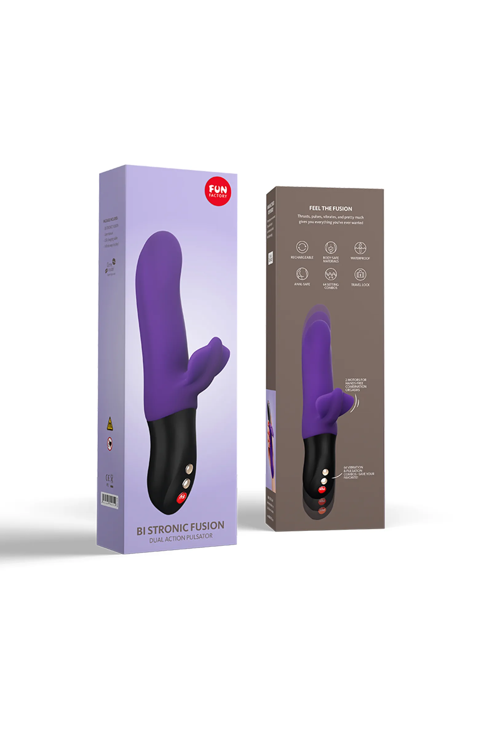 Пульсатор Fun Factory Bi Stronic Fusion — идеальный любовник: • Его многофункциональность поражает: пульсатор совмещает в себе мощный клиторальный вибратор, массажёр точки G или простаты, а также стимулятор влагалища, половых губ или ануса. • Его инновационный принцип работы позволяет насладиться и вибрацией, и пульсацией, которые могут работать вместе или независимо друг от друга. • Его интуитивно понятная панель управления молниеносно отзывается на любое желание, в том числе на мгновенную остановку. • Его расширенный функционал — светящийся индикатор заряда аккумулятора и блокировка замка — помогает держать удовольствие под контролем. • Его водонепроницаемая поверхность никогда не откажет в совместном принятии расслабляющей ванны. • Его зарядка от USB-провода быстро возвращает разрядившуюся игрушку в строй. С пульсатором Fun Factory Bi Stronic Fusion жаркие оргазмы станут постоянными спутниками интимных сессий!