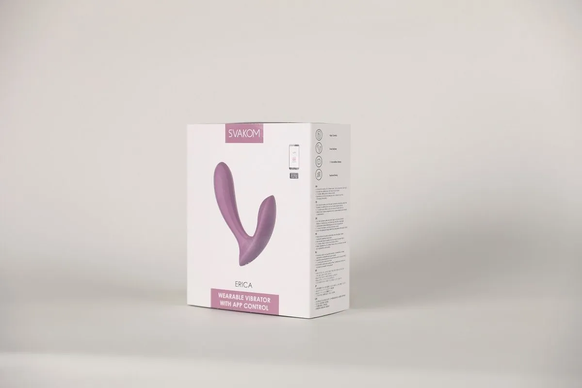 - 100 % водонепроницаемость, что позволяет наслаждаться вибромассажером Svakom Erica даже в ванной или джакузи.