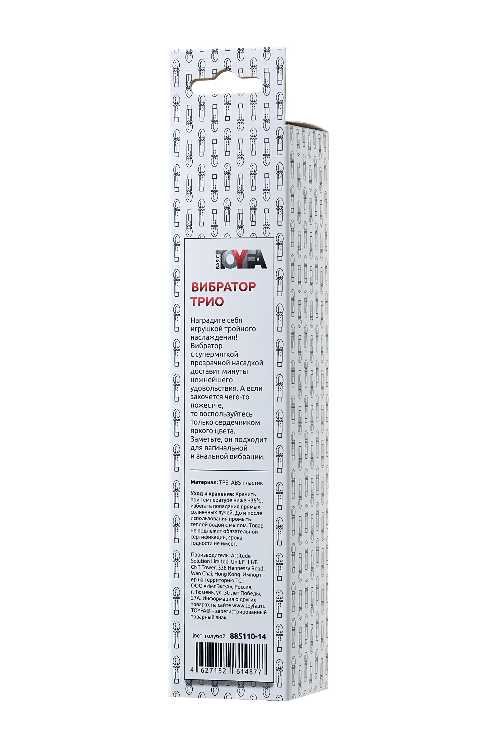 —Вибратор TOYFA Trio Vibe, TPE, голубой, 15,5 см