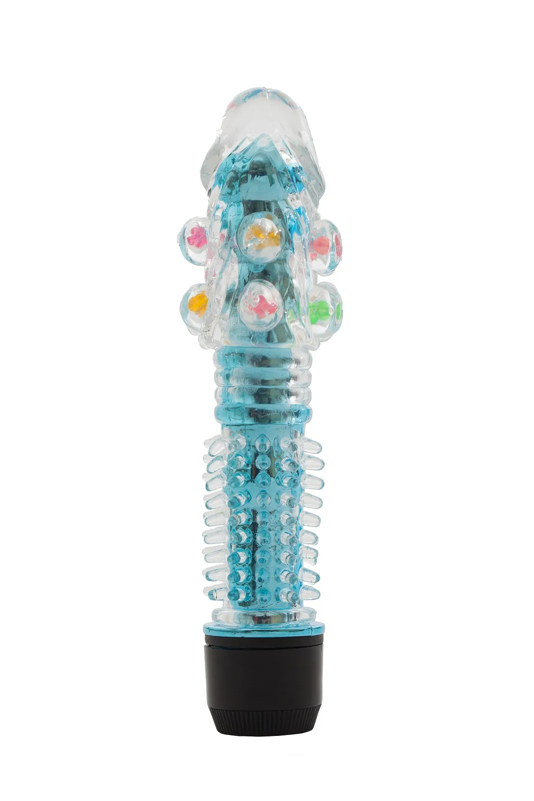 Голубой вибромассажер, имеет классическую форму. Необычайно приятный, эластичный материал, вибратор оснащен дополнительными мягкими пупырышками под головкой и усиками в основании ствола для особенных ощущений. Степень вибрации регулируется при помощи кнопки, расположенной в основании. Работает от 2-х батареек АА (нет в комплекте). Общая длина – 16,5 см, максимальный диаметр - 4 см.
