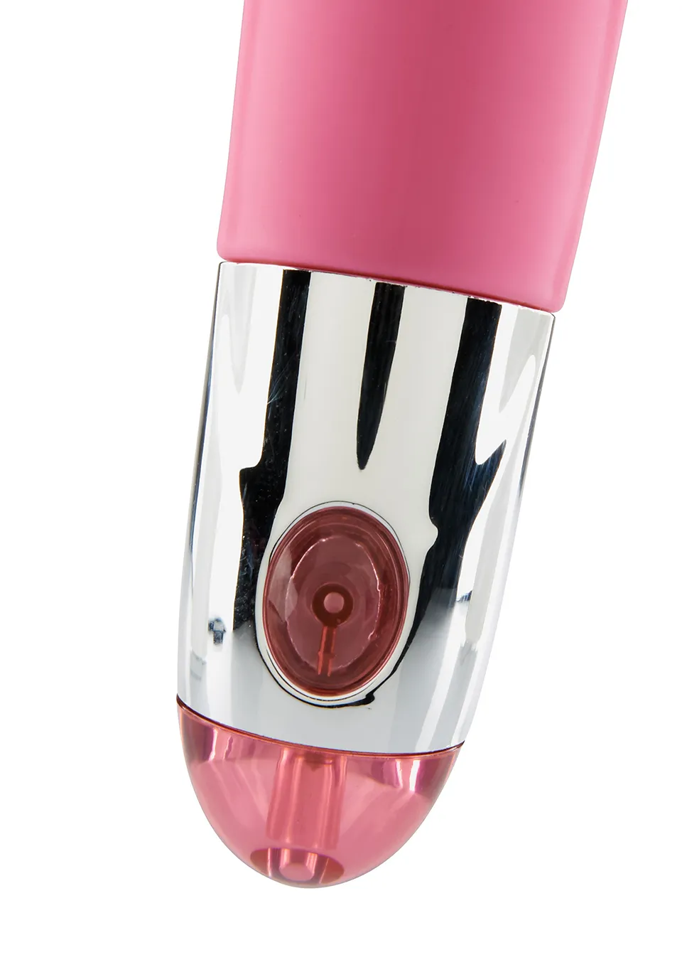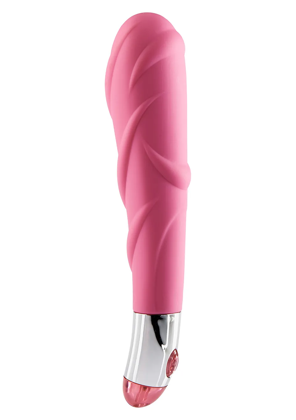 Вибростимулятор нежно розового цвета с рельефной поверхностью,расширяется к вверху. Несколько режимов работы вибрации и пульсаци,управляются с помощью кнопки ,расположенной у основания вибратора.Материал силикон- необычайно приятный на ощупь,без запаха.Работает от 2-х батареек типа ААА( не идут в комплекте) .Общая длина 18,5 см, рабочая длина 14,5 см,диаметр максимальный 3,5см.
