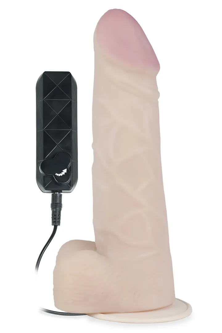 Реалистичный вибратор телесного цвета с мошонкой на присоске. Имеет с ярко выраженную головку и вены. Необычайно приятный, рельефный, мягкий на ощупь, выполнен из «Киберкожи». Плавная регулировка скорости вибрации на дистанционном пульте.  Работает от 2-х батареек типа АА (нет в комплекте). Общая длина – 28,5 см, рабочая длина – 22 см, максимальный диаметр – 5,5 см. Упакован в пластиковую прозрачную коробку.
