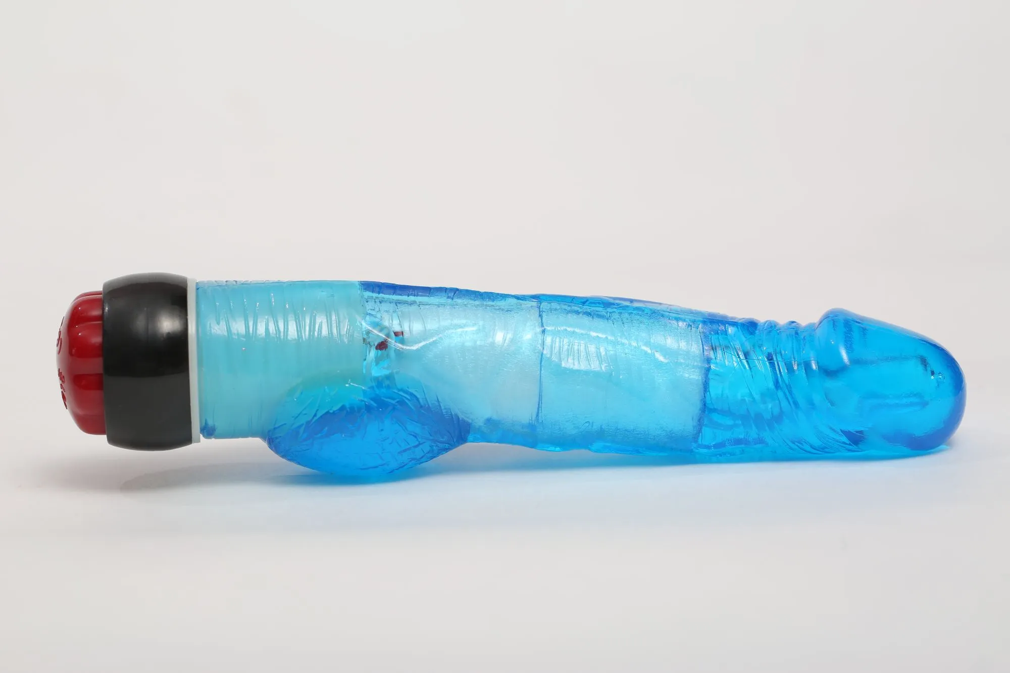 Голубой вибромассажёр, имеет форму члена с ярко-выраженной головкой и мошонкой. Встроенная подсветка «пламя страсти» реагирует на увеличение мощности вибрации. Необычайно приятный, рельефный, выполненный из тпр. Степень вибрации регулируется при помощи кнопки, расположенной в основании. Работает от 2-х батареек АА (нет в комплекте). Общая длина – 21,5 см, рабочая длина-18 см, максимальный диаметр -3,5 см. Упаковка- блистер