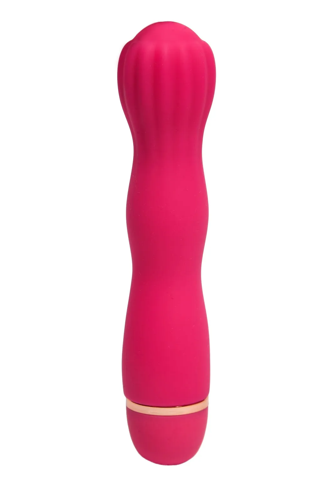 Гладкий вибромассажер из силикона со специальными волнами для усиления наслаждения на стволе и бутоном цветка на кончике. Имеет 20 режимов вибрации. Необычайно стильный и эргономичный дизайн. Тактильно приятный, рельефный, упругий на ощупь. Водонепроницаемый, тихий, но с мощной вибрацией. От классической вибрации до нарастающей пульсации. Без постороннего запаха, не пористый, без швов. Общая длина- 18 см, максимальный диаметр 3,5 см