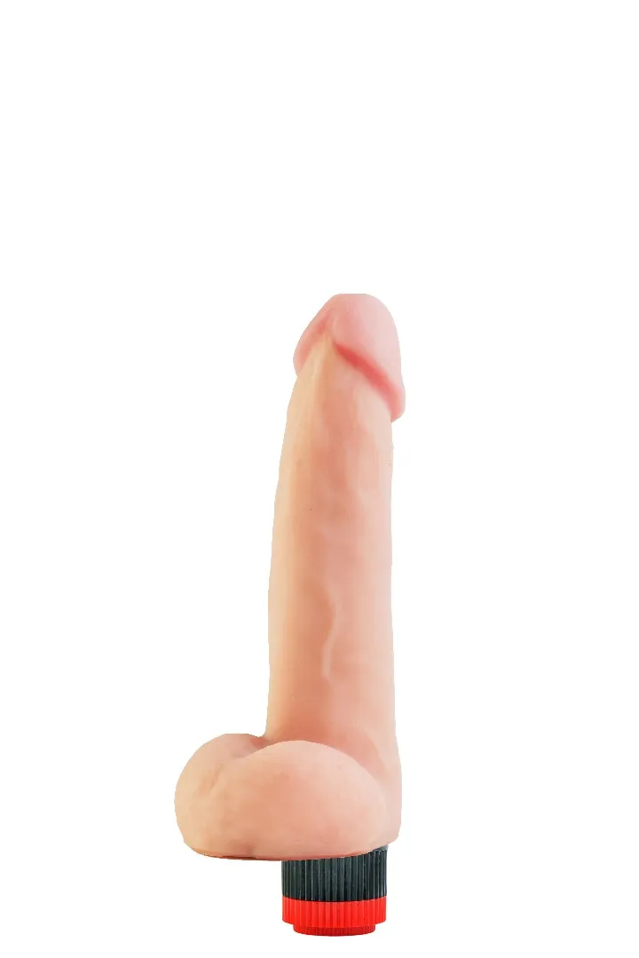 Вибромассажёр телесного цвета. Имеет форму члена с ярко-выраженной головкой. Необычайно приятный, рельефный, выполненный из материала «Неоскин» , передающий эффект мягкой реалистичной текстуры кожи, не имеет швов. Виброэлемент расположен по всей длине изделия. Степень вибрации регулируется при помощи кнопки, расположенной в основании. Общая длина – 23 см, рабочая длина- 16 см, максимальный диаметр -5 см. Упаковка: картонная коробка с принтом.