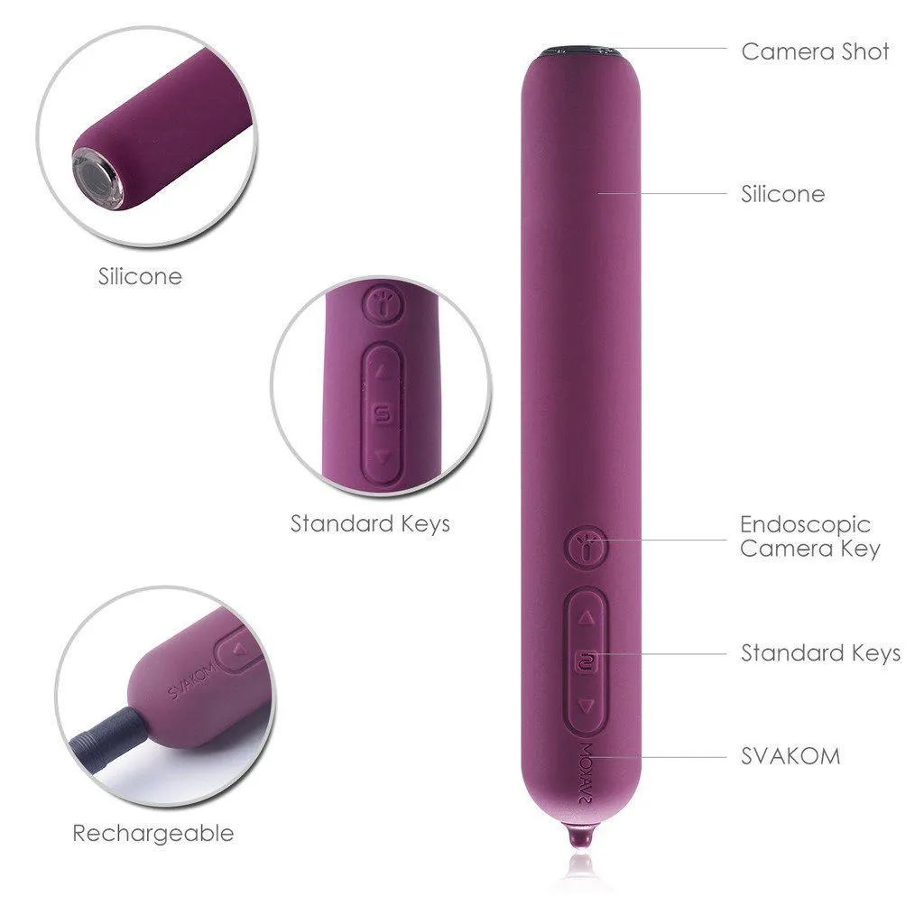 Пожалуй, Siime - это самый необычный вибратор от компании Svakom. Он имеет множество режимов для различного типа стимуляции. Но самое примечательное то, что он снабжен встроенной видеокамерой со светодиодной подсветкой! Вибратор универсален: он может стать фетишем во время ролевых игр, или можно использовать его для виртуального секса, так как он позволит отправить партнеру изображение в любую точку мира.