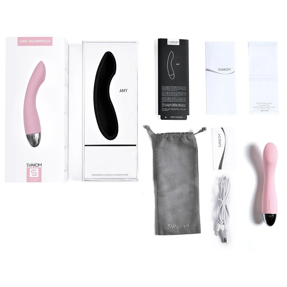 Вибромассажер Amy от компании Svakom, кроме прочего, подойдет для направленной стимуляции точки G, благодаря его изогнутому стволу и особой форме головки.