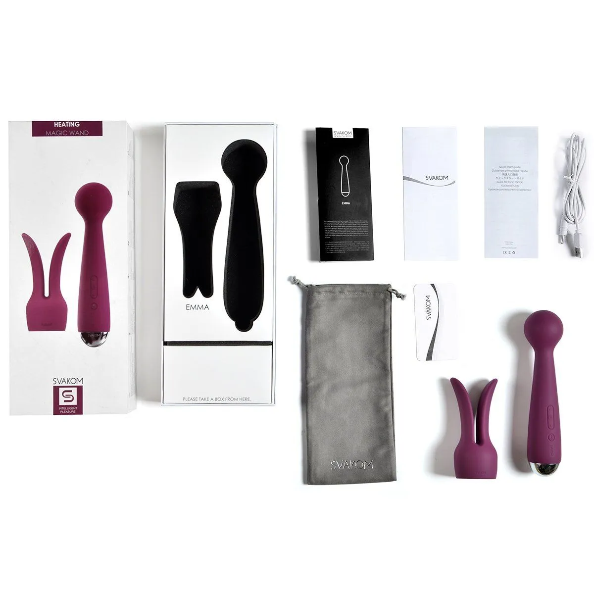 Emma обладает несколькими режимами и скоростями вибрации, функция нагрева и съемная насадка с ушками - вот лишь