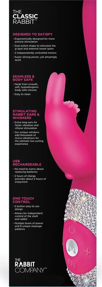 Классический вибратор "кролик" Classic Crystal от компании The Rabbit Company изготовлен из высококачественного и бесшовного медицинского силикона и украшен стразами. Вибратор оснащен двумя независимыми моторчиками, которые обеспечивают шесть бесшумных функций вибрации. Classic Crystal может стать прекрасным подарком для близкого человека! Он сможет доставить Вам яркое удовольствие благодаря одновременной стимуляции двух эрогенных зон. Небольшой стимулятор в виде милого кролика будет ласкать клитор, в то время как основная часть подарит Вам незабываемый массаж влагалища. Позвольте себе погрузиться в множественные оргазмы вместе с вибратором Classic Crystal!
