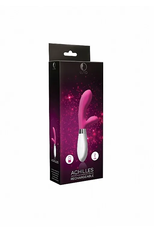 Achilles – вибромасссажер кролик. Эта игрушка имеет особую эргономичную форму с закругленной, имеющей определенный уклон головкой, и гибкий клиторальный отросток, что делает стимуляцию более целенаправленной. Вибромассажер имеет два мощных двигателя, по одному в каждом отростке, обеспечивающих 10 функций вибрации, способной достигать 15000 оборотов в минуту, при этом уровень звука не превышает 50 дБ.