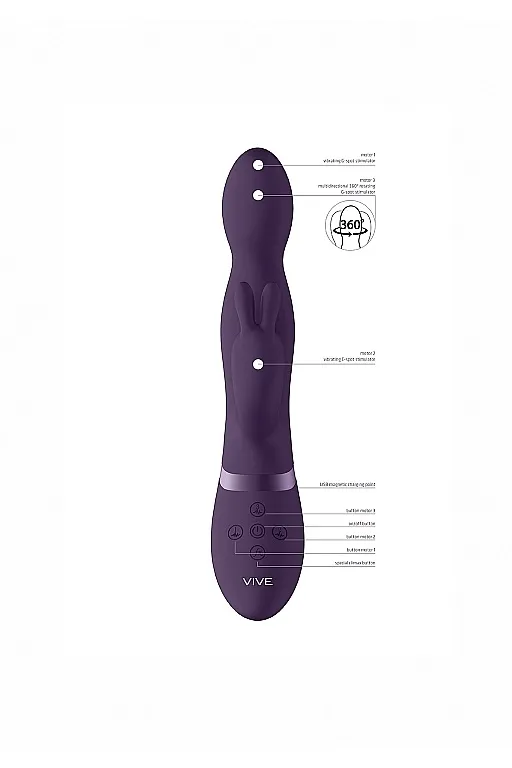 Вибромассажер подходит для вагинально-клиторальной стимуляции. Функция «мгновенный оргазм» дает возможность получения быстрого и/или очень сильного удовольствия. Благодаря ротации на 360 градусов идеально подходит для стимуляции внутренних эрогенных зон, в сочетании с клиторальной стимуляцией.