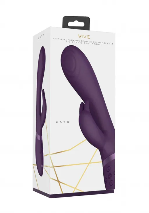 Cato – импульсный вибромассажер-кролик с функцией «импульсное воздействие» на вагинальном отростке. Он изготовлен из высококачественного, мягкого, нежного на ощупь 100% медицинского силикона с пылеотталкивающими свойствами и прочного, элегантного АБС-пластика. Вибромассажер оснащен инновационными электродвигателями нового поколения F1. Преимущество такого типа двигателя в том, что он делает интенсивную стимуляцию очень мягкой даже при мощном максимальном воздействии. Игрушка имеет два мощных отдельных мотора, каждый из которых обеспечивает 10 функций вибрации, способной достигать 8500 и 9000 оборотов в минуту. Это дает возможность настраивать более чем 1000 уникальных комбинаций.