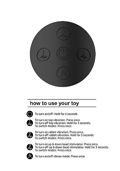 Функциональность: 10 функций вибрации в каждом из отростков, 10 функций движения кольца и функция «мгновенный оргазм»