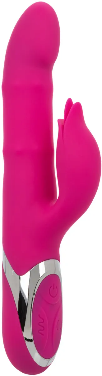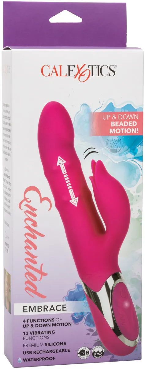 Enchanted Embrace - – перезаряжаемый вибромассажер с клиторальным отростком в форме бутона Изготовлен из бесшовного, гипоаллергенного, безопасного для тела, не содержащего фталатов силикона премиум-класса, не имеет без запаха. Два мощных мотора обеспечивает 12 интенсивных режимов вибрации и 4 функции пенетрации бусинами по всему стволу.