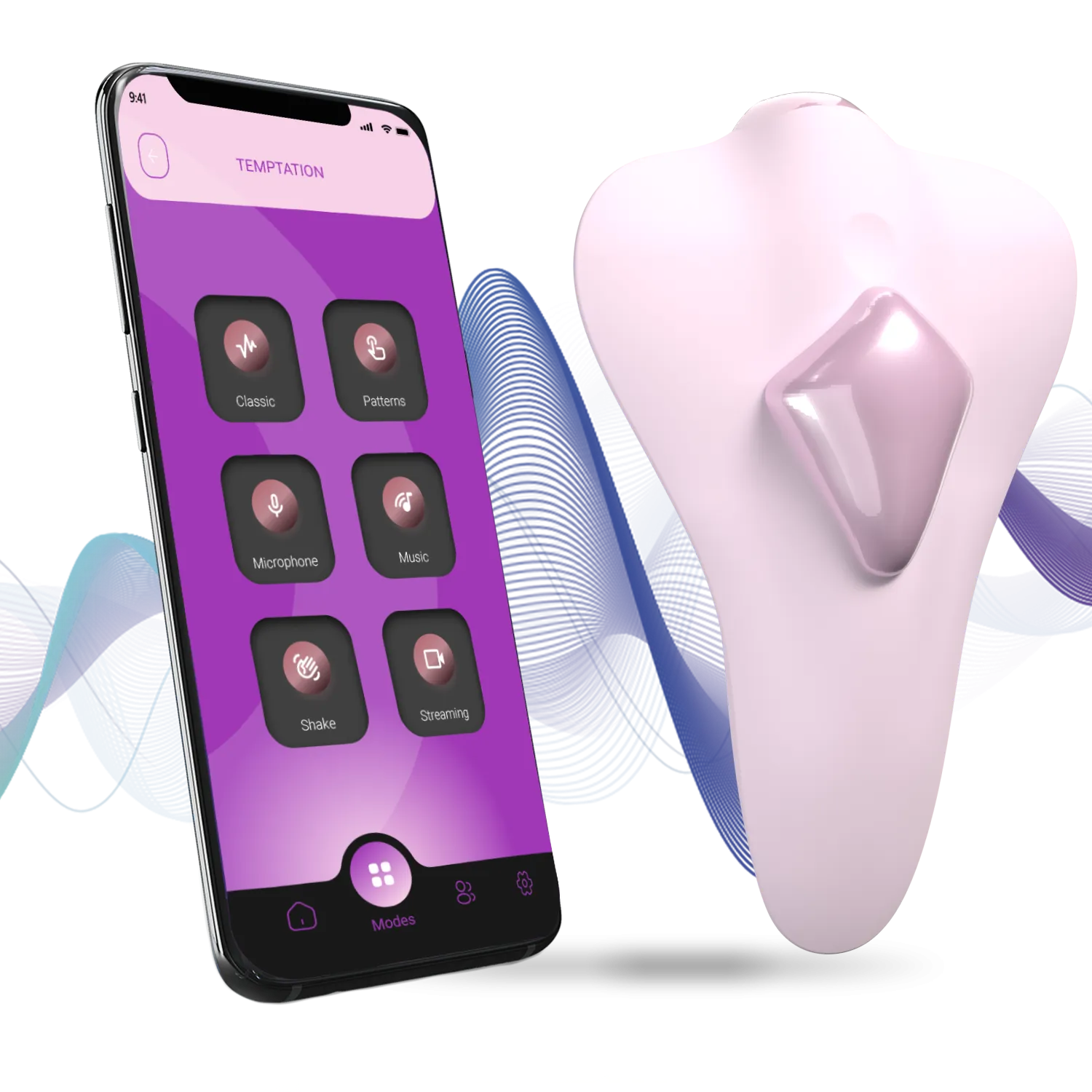 Стимулятор клитора Temptation + APP светло-розового цвета. Изготовлен из мягкого силикона, крепится магнитом. Длина — 8,7 см, диаметр — 5,4 см, 9 режимов вибрации. Подходит для скрытого ношения, управляется через приложение. Водонепроницаемость IPX7 позволяет использовать в воде. Заряжается через USB. Уход: промыть водой с мылом. Отличный выбор для экспериментов.