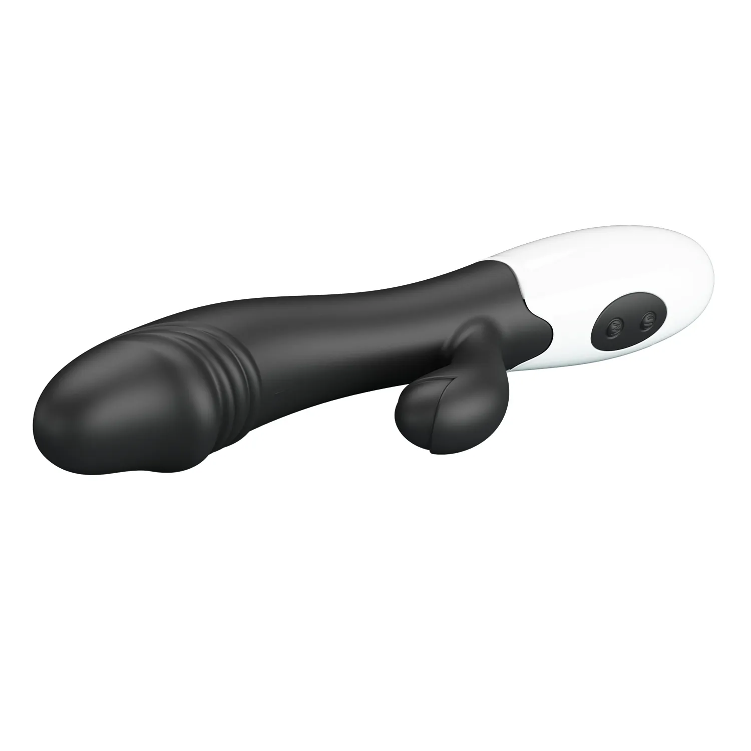 Вибратор Snappy от бренда PRETTY LOVE изготовлен из ABS и силикона. Он оснащён мощным мотором, предлагающим 30 функций вибрации, и работает на 2 батарейках типа AAA. Устройство предназначено для одновременного стимулирования точки G и клитора, обеспечивая интенсивные ощущения. Гибкая конструкция позволяет поддерживать контакт с клитором в любом положении, а простое управление позволяет настраивать интенсивность вибраций или отключать стимуляцию точки G или клитора. Общий диаметр вибратора — 3,2 см, общая длина — 19 см, длина рабочей части — 9,5 см. Вес — 107 грамм.