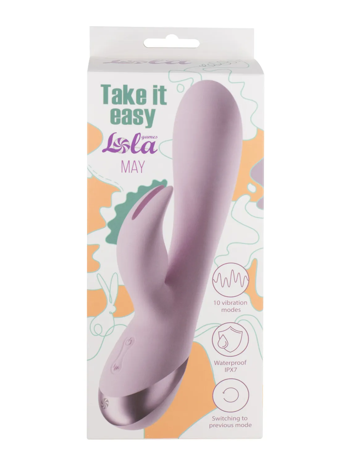 Разработанный для максимального удовлетворения, вибратор May оснащен двумя мощными моторами. Он обладает впечатляющим выбором из 10 режимов вибрации и изготовлен из гипоаллергенного силикона, что обеспечивает бархатистую гладкость и безопасность для тела. Его эргономичный дизайн идеально помещается в ладони, позволяя легко управлять девайсом. Простая в использовании система управления оснащена всего двумя кнопками. Первая кнопка легко включает/выключает и переключает режимы вибрации. Вторая кнопка позволяет плавно перематывать режимы назад. Вибратор полностью водонепроницаемый и заряжается от USB. Полностью заряжается за 50 минут. Работает без перерыва 60 минут.