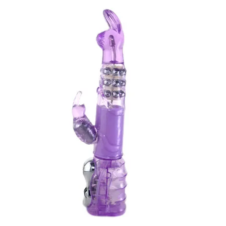 Мультискоростной рельефный вибромассажер розового цвета с функциями вращения ствола и мощным клиторальным стимулятором в форме зайчика. Имеет несколько скоростей вращения ствола, с возможностью менять направление, несколько скоростей вибрации стимулятора, все функции удобно регулируются колесиками на ручке. Вращение осуществляется при помощи трех рядов металлических шариков , расположенных внутри изделия. Очень мягкий, имеет не пористую структуру. Водонепроницаемый. Материал изготовления - ПВХ-гель. Работает от четырех батареек типа АА ( в комплект не входят). Рабочая длина 16 см, максимальный диаметр 4 см, длина стимулятора 7см, диаметр 3 см.