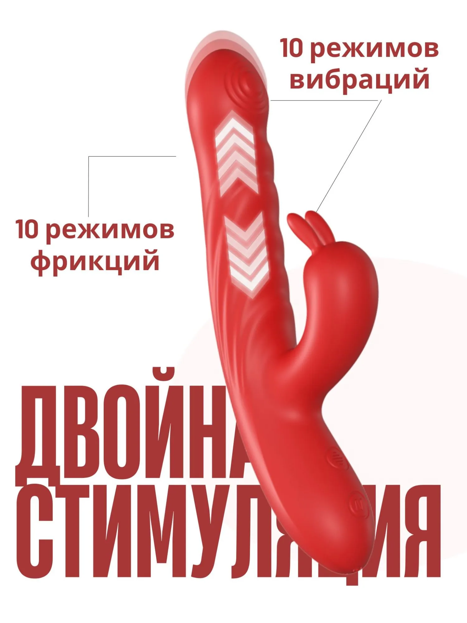 Элегантный и мощный вибратор SW3027 сочетает в себе уникальную функциональность и эргономичный дизайн. Вагинальная часть обеспечивает 10 фрикционных режимов и 10 режимов вибрации. Клиторальный кролик также оснащен 10 режимами вибрации для точечной стимуляции. Вагинальную и клиторальную части можно использовать отдельно или одновременно. Перезаряжается от USB. Время зарядки: 90 минут. Время работы: до 60 минут.Вибратор изготовлен из силикона, водонепроницаем и прост в использовании. Верхняя кнопка: включает/выключает вагинальную часть и переключает режимы. Нижняя кнопка: включает/выключает клиторальную часть. Общая длина: 22 см. Рабочая длина: 12,5 см. Диаметр: 3,5 см. Длина клиторального отростка: 7 см.