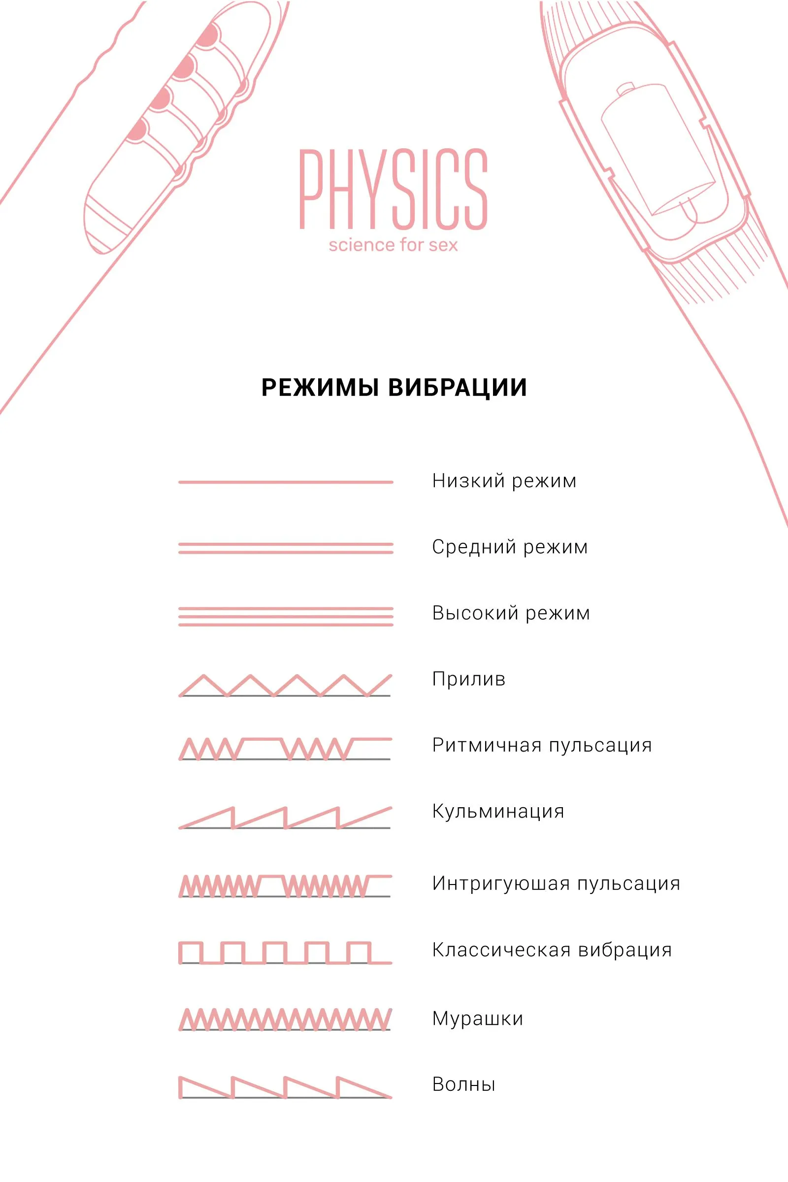 Новый бренд PHYSICS — наука для удовольствий! Игрушки разработаны с учётом законов физики и анатомии. Каждая игрушка дополнена функциями, воздействующими на организм девушки таким образом, чтобы доставить ей вспышку оргазма, сравнимую со вспышкой молнии. Вибратор с пульсацией и подогревом PHYSICS FAHRENHEIT. 10 режимов вибрации Нагрев до 43 °C Утончённый и элегантный дизайн разработан с учётом женской анатомии. Мягкий и нежный силикон приятен к телу, а также прост в уходе. Вибратор генерирует возвратно-поступательную стимуляцию. Функция нагрева подарит комфортные ощущения. Благодаря таким возможностям, наслаждение будет близким по ощущениям с контактом с живыми человеком. Бусины, расположенные внутри, будут стимулировать интимные мышцы. Оргазм с вибраторами Physics глубокий и насыщенный, благодаря притоку крови и кислорода к органам тазового дна.
