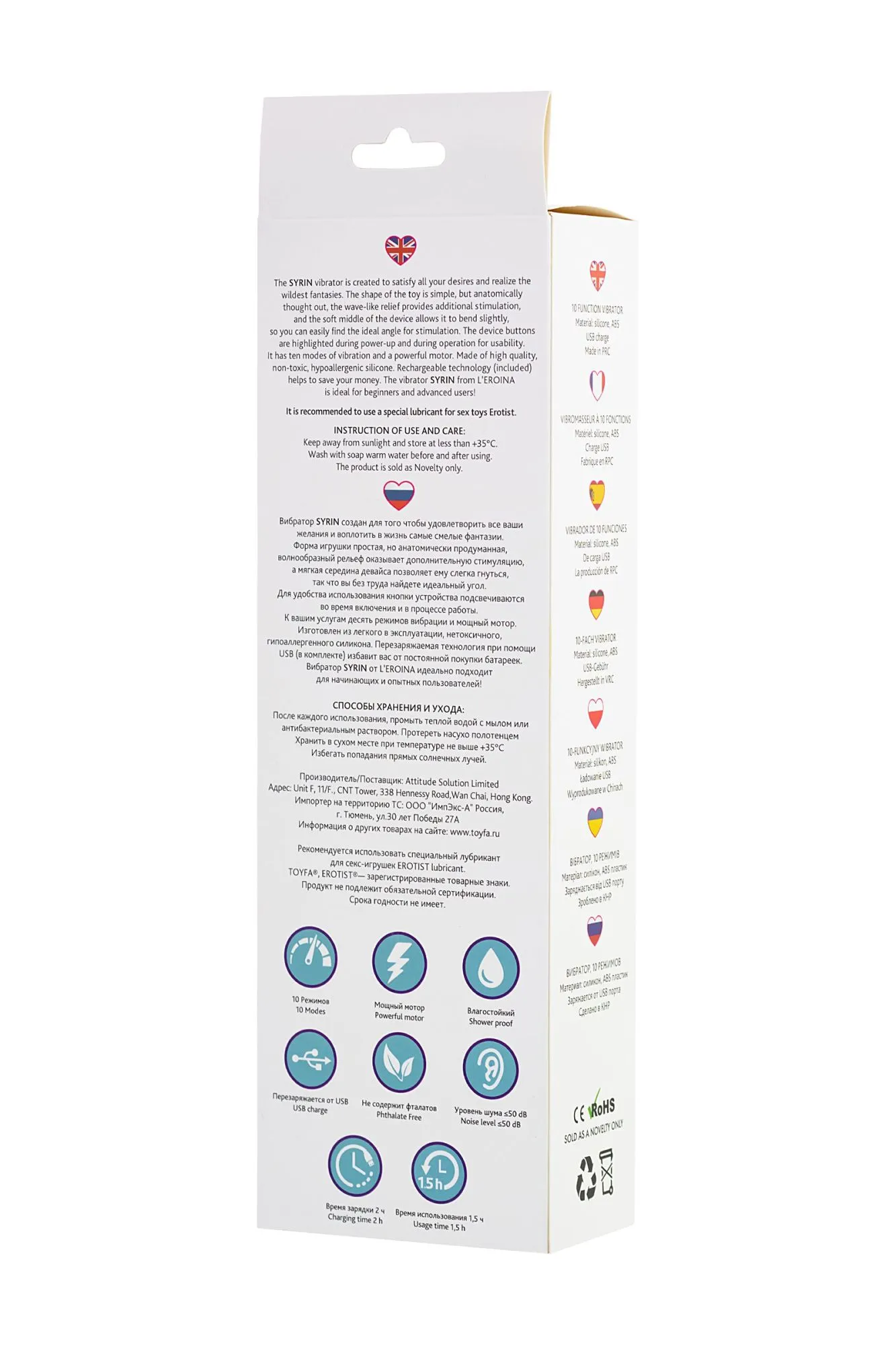 Вибратор SYRIN создан для того чтобы удовлетворить все ваши желания и воплотить в жизнь самые смелые фантазии. Форма игрушки простая, но анатомически продуманная, волнообразный рельеф оказывает дополнительную стимуляцию, а мягкая середина девайса позволяет ему слегка гнутся, так что вы без труда найдете идеальный угол для стимуляции. Для удобства использования кнопки устройства подсвечиваются во время включения и в процессе работы. К вашим услугам десять режимов вибрации и мощный мотор. Изготовлен из легкого в эксплуатации, нетоксичного, гипоаллергенного силикона. Перезаряжаемая технология при помощи USB (в комплекте) избавит вас от постоянной покупки батареек. Вибратор SYRIN от L’EROINA идеально подходит для начинающих и опытных пользователей!