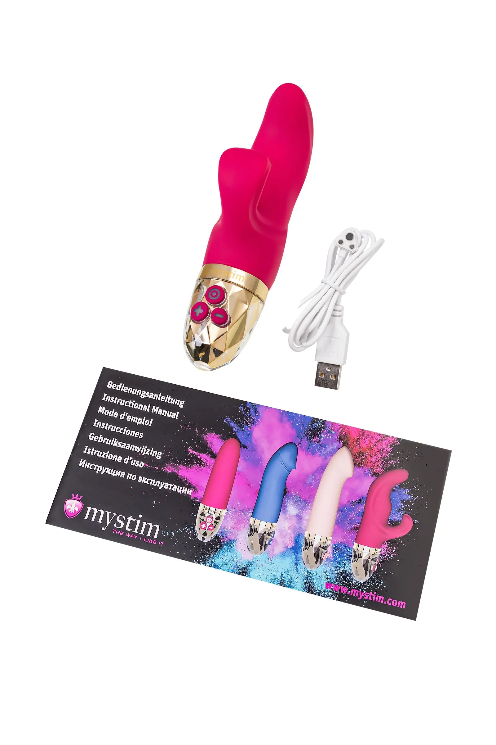 Если вы всегда мечтали о необычных сексуальных ощущениях, но предпочитаете компактные размеры, то вибратор-кролик Hop Hop Bob от Mystim станет вашим идеальным спутником. Его рабочая длина всего 7,5 см, а максимальный диаметр – 3,6 см, этот вибратор идеально подходит для новичков. Клиторальный отросток обеспечивает вам двойное наслаждение — выбирайте из 8 режимов классической вибрации и 5 скоростей для интенсивных ощущений. Добавьте нотку роскоши и наслаждения в вашу интимную жизнь с Mystim Hop Hop Hop Bob. Вибратор сделан из медицинского платинового силикона, гарантируя приятные ощущения и бережное отношение к коже. Элегантный и современный дизайн никого не оставляет равнодушным. Для дополнительного комфорта используйте лубрикант на водной основе. Этот перезаряжаемый мастер удовольствий непроницаем для воды и обладает потрясающей мощью. Для зарядки вибратора просто подключите USB-кабель к игрушке. Роскошная ручка-держатель выполнена из прозрачного ABS-пластика и украшена зеркальными элементами. Превратите каждую игру в путешествие по новым горизонтам удовольствия с Mystim Hop Hop Bob E-Stim! Удобное управление: Кнопка вибрации запускает вибрацию, переключает режимы и выключает ее (удерживать 2 секунды). Кнопка "Минус" постепенно снижает интенсивность вибрации и выключает ее (удерживать 2 секунды). Кнопка "Плюс" включает вибрацию, постепенно увеличивая интенсивность. Блокировка кнопок. Чтобы включить или отключить блокировку кнопок, одновременно нажми и удерживай кнопку вибрации и кнопку «Минус» или «Плюс» в течение 3 секунд. (При этом кнопки несколько раз кратковременно мигнут.) Внимание: новое устройство поставляется с включенной блокировкой кнопок, поэтому перед первым использованием блокировку нужно отключить. 8 программ вибрации и 5 уровней интенсивности Длина 16,5 см, диаметр 3,6 см Мощный и при этом тихий мотор Изготовлен из 100 % медицинского платинового силикона. Цвет - яркая фуксия Магнитное USB-зарядное устройство Mystim в комплекте Время зарядки - 120 мин, время работы - 90 мин.