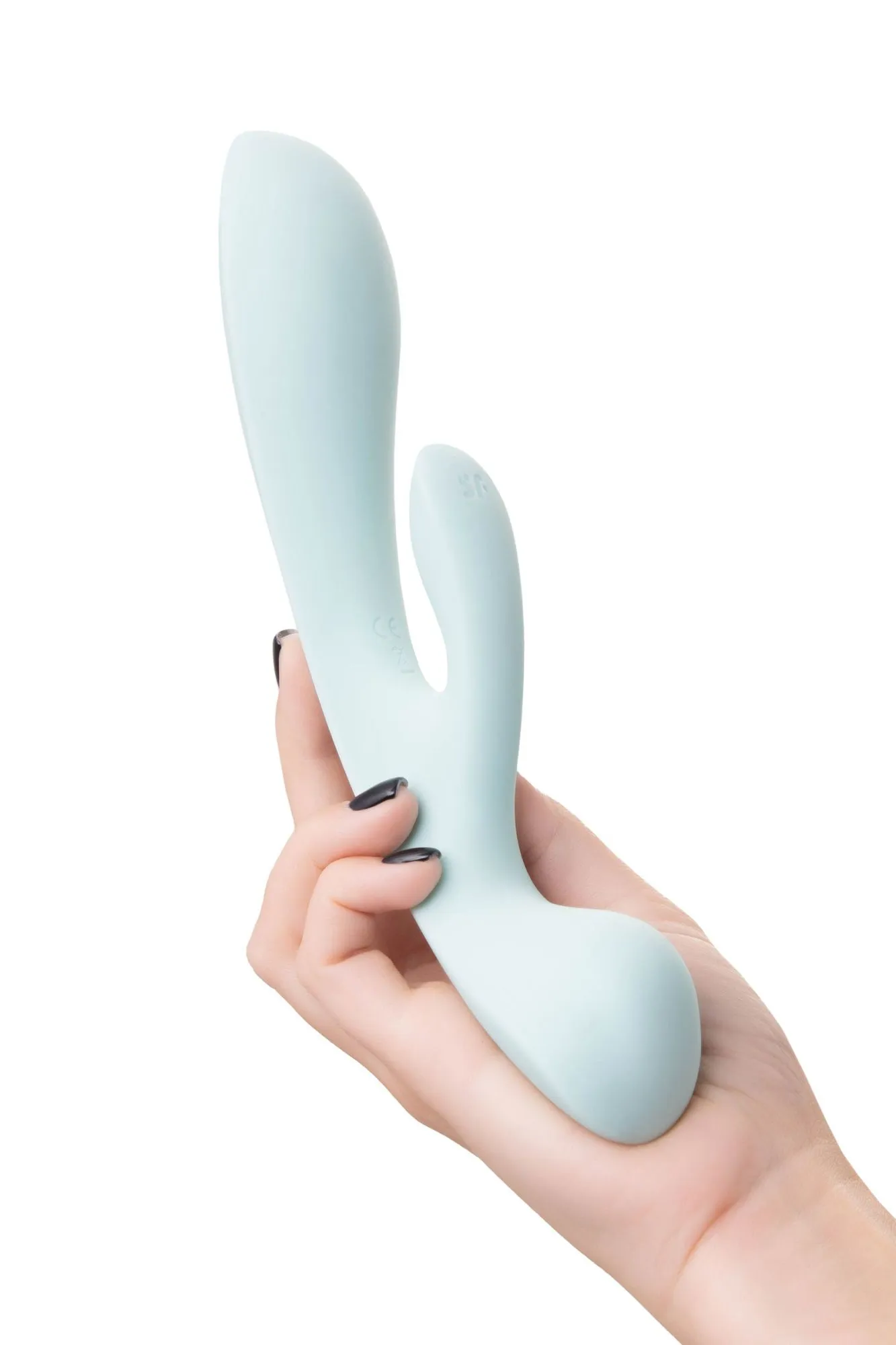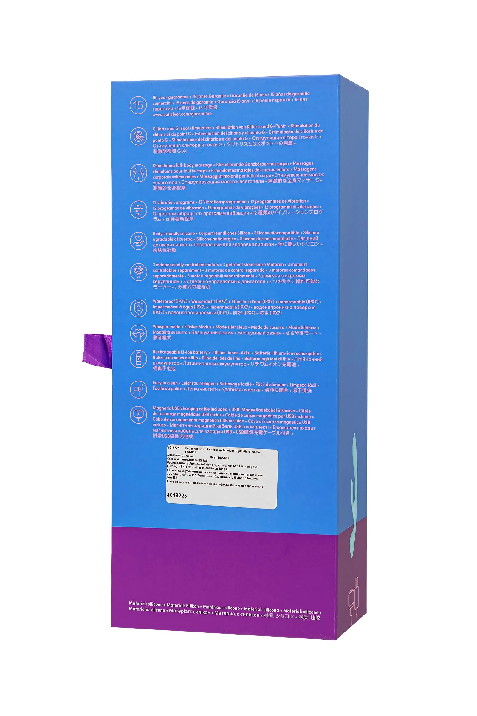 Обрети удовольствие в тройном измерении с Satisfyer Triple Oh! С одной стороны игрушка выглядит как классический вибратор-кролик, а с другой стороны это миниатюрный ванд. Этот вибромассажер объединяет в себе двойную стимуляцию твоих "горячих точек" с чувственным массажем всего тела, а каждая функция управляется независимо. Тройная Мощь: С 3 моторами, Triple Oh дарит тебе полную мощность удовольствия. Три моторчика гарантируют бесконечные варианты стимуляции точки G и клитора, сопровождаемые массажем. Удовольствие 2 в 1: Это не просто массажер-ванд, но и вибратор-кролик в одном устройстве. Одновременная стимуляция клитора и точки G дарит наивысшее наслаждение и яркие продолжительные оргазмы. Интенсивный массаж: Наслаждайся чувственным массажем всего тела, особенно эффективным на чувствительных зонах. Объемная головка, имитирующая ванд, особенно эффективно массирует любые участки тела и дарит обширное расслабление. А заостренный кончик позволяет достигать точечного наслаждения. Разнообразие программ: Каждый из 3 моторов предлагает целых 12 программ вибрации, даря тебе множество вариантов для наслаждения. Идеальная адаптация: Гибкость игрушки и точечно заостренная головка обеспечивают комфорт и точность в использовании. И вагинальная, и клиторальная части благодаря подвижности подстраиваются под любые анатомические особенности женского тела для наивысшего наслаждения в интимные моменты. Водонепроницаемая изысканность: Triple Oh обладает степенью защиты IPX7, позволяя тебе наслаждаться им даже в воде. Проводи релаксацию в ванне или душе без ограничений. Безопасный и нежный: Изготовленный из мягкого шелковистого силикона, он безопасен для твоего тела и приятен к прикосновению. Абсолютно гипоаллергенный материал адаптируется к температуре твоего тела. Бесконечные возможности: С Satisfyer Triple Oh ты можешь быть уверена в бескрайних возможностях удовольствия. А если энергия угаснет, подзаряди его легко с помощью прилагаемого USB-кабеля. Обрети тройную гармонию удовольствия с Satisfyer Triple Oh! Особенности: 3 мощных автономных мотора Гибкий вибратор подстраивается под анатомию индивидуально Многовариантность использования для интимного удовольствия и для расслабляющего массажа Эргономичная и стильная форма По 12 режимов вибрации для каждого мотора. Нежный голубой цвет и мягкий, эластичный силикон без запаха, без аллергенов и вредных для здоровья веществ. Возможность использовать игрушку в ванной и душе благодаря полной водонепроницаемости (до 30 минут на глубине до 1 метра) – IPX7. Перезаряжаемый, магнитный USB-кабель.