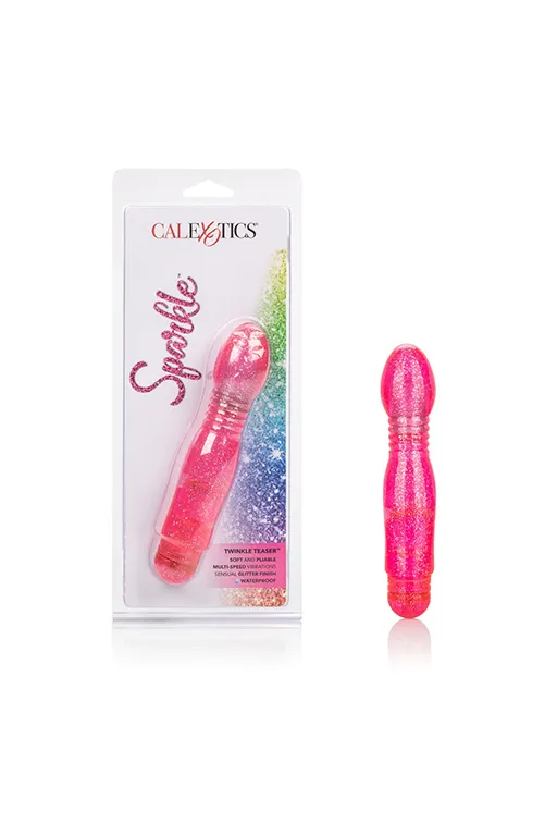 Twinkle Teaser - яркий универсальный вибромассажер с ярковыраженной головкой. Он выполнен из очень мягкого гелеобразного сверкающего материала.