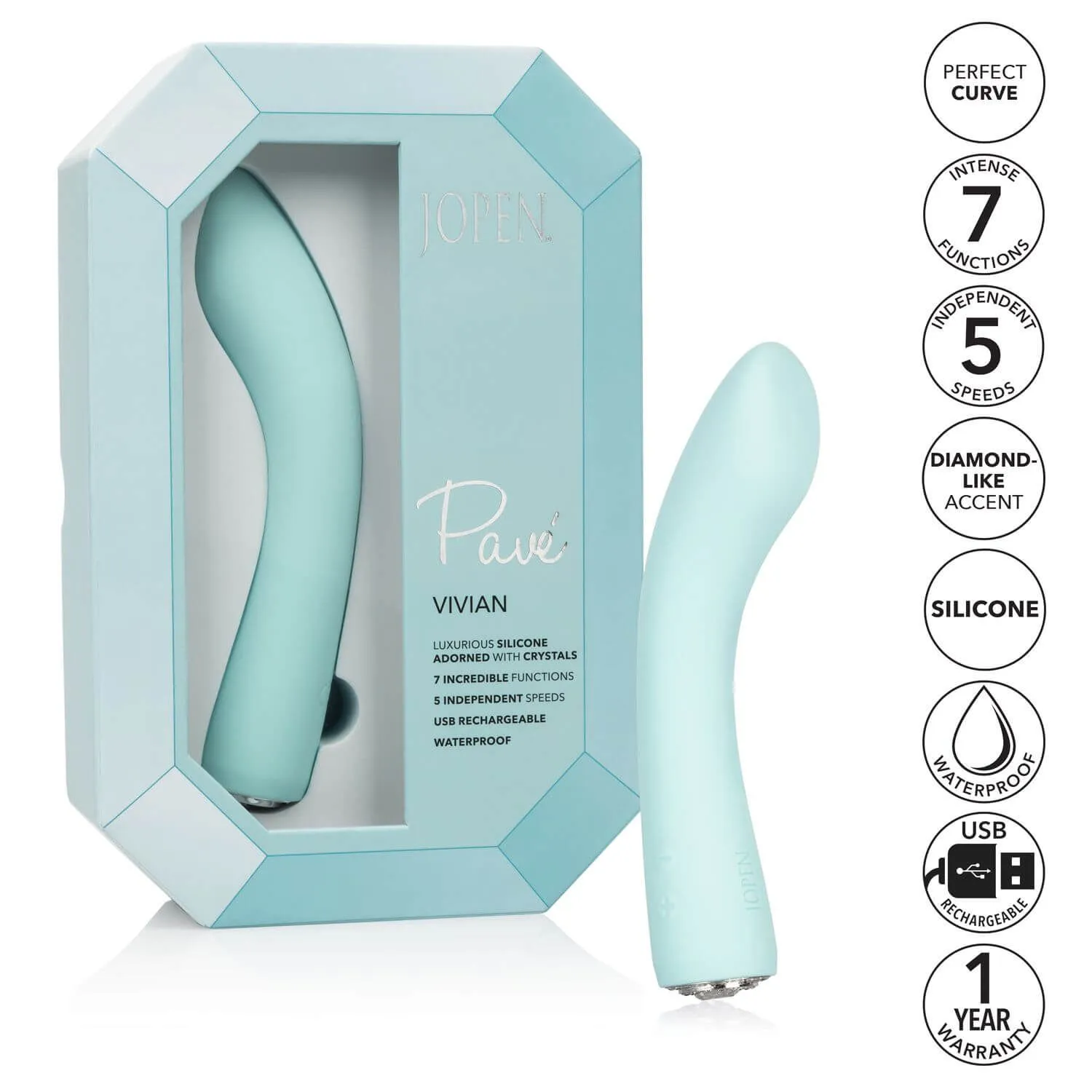 Pave Vivian от компании California Exotic Novelties - это изогнутый вибратор, украшенный сияющим кристаллом и небольшими стразами, эргономичная форма которого была разработана специально таким образом, чтобы интенсивно массажировать стенки влагалища и точку G.