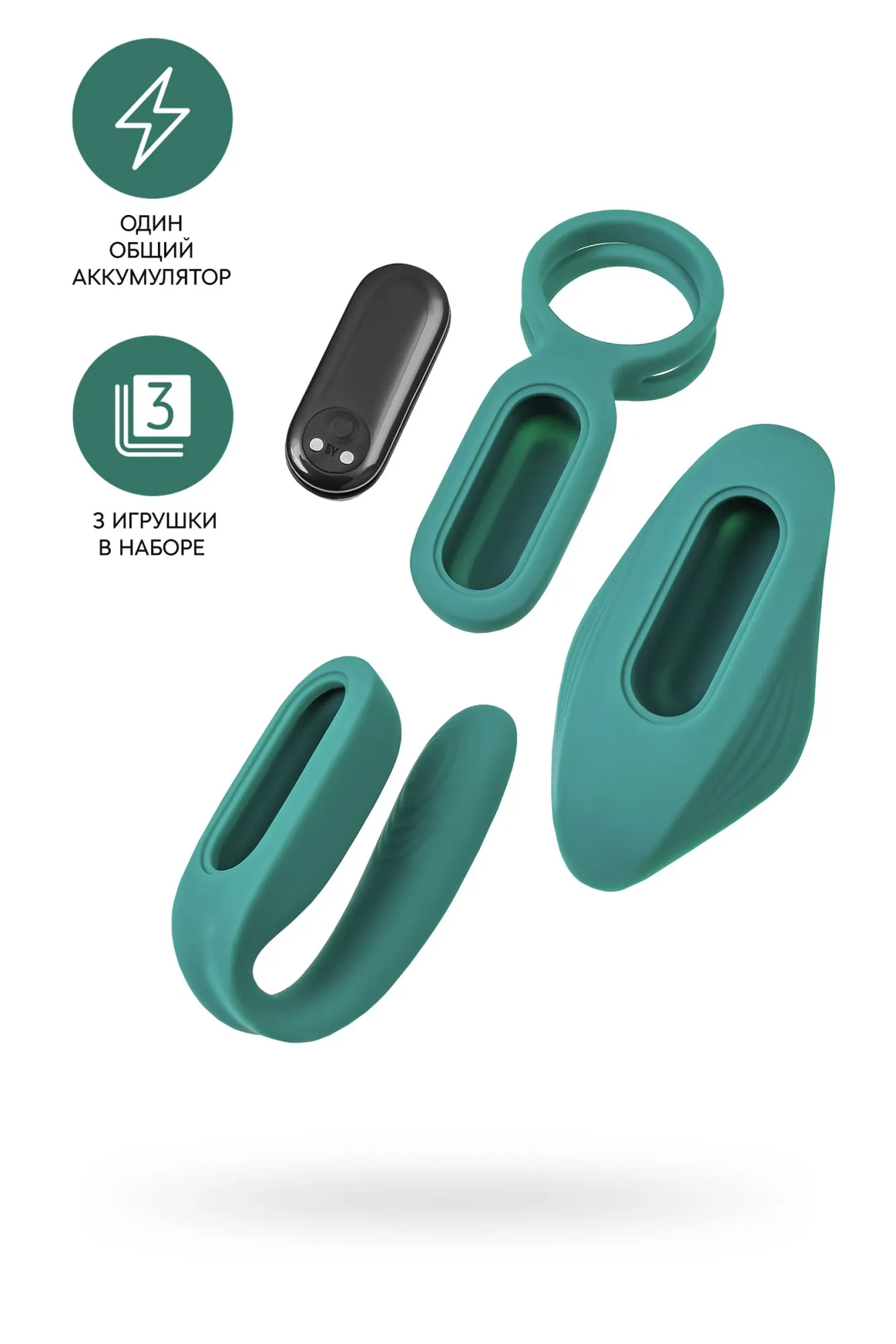 Мир меняется и вместе с ним пробуждается желание узнавать свое тело лучше и глубже. Набор из трех разнообразных интимных игрушек с вибрацией создан специально для пар, которые стремятся познавать себя и друг друга, чтобы получать еще больше удовольствия от близости. Эрекционное кольцо, вкладыш в трусики и вибратор-прищепка для одновременной стимуляции. Все три девайса, работают от съемного аккумулятора-вибратора и управляются с помощью пульта. Функционал вибромотора включает 8 режимов вибрации и магнитную USB зарядку. Игрушки выполнены из качественного шелковистого силикона насыщенного изумрудно-зеленого цвета. Для комфортного использования рекомендуется использовать с лубрикантом на водной основе. Эрекционное вибро-кольцо помогает продлить эрекцию и усилить твои и его ощущения, чтобы ваша общая кульминация была еще более яркой. Диаметр колец для пениса и мошонки - 39 мм,ширина - 42 мм, длина - 98 мм Вкладыш в трусики поможет по-новому взглянуть на прелюдию. Расположи игрушку в трусиках так, чтобы выпуклая часть касалась входа во влагалище. А твой партнер с помощью пульта может управлять твоим удовольствием. Такой мини-вибратор легко использовать даже вне спальни, например, на свидании. Длина - 90 мм, ширина - 49 мм. Вибратор-прищепка усиливает ощущения обоих партнеров во время сексуального контакта. Основная вибрация ощущается на клиторе, гибкая погружная часть передает более мягкую вибрацию, одновременно стимулируя пенис и зону G. Длина - 70мм, ширина - 54мм, длина погружной части - 79мм, ширина погружной части - 15мм.