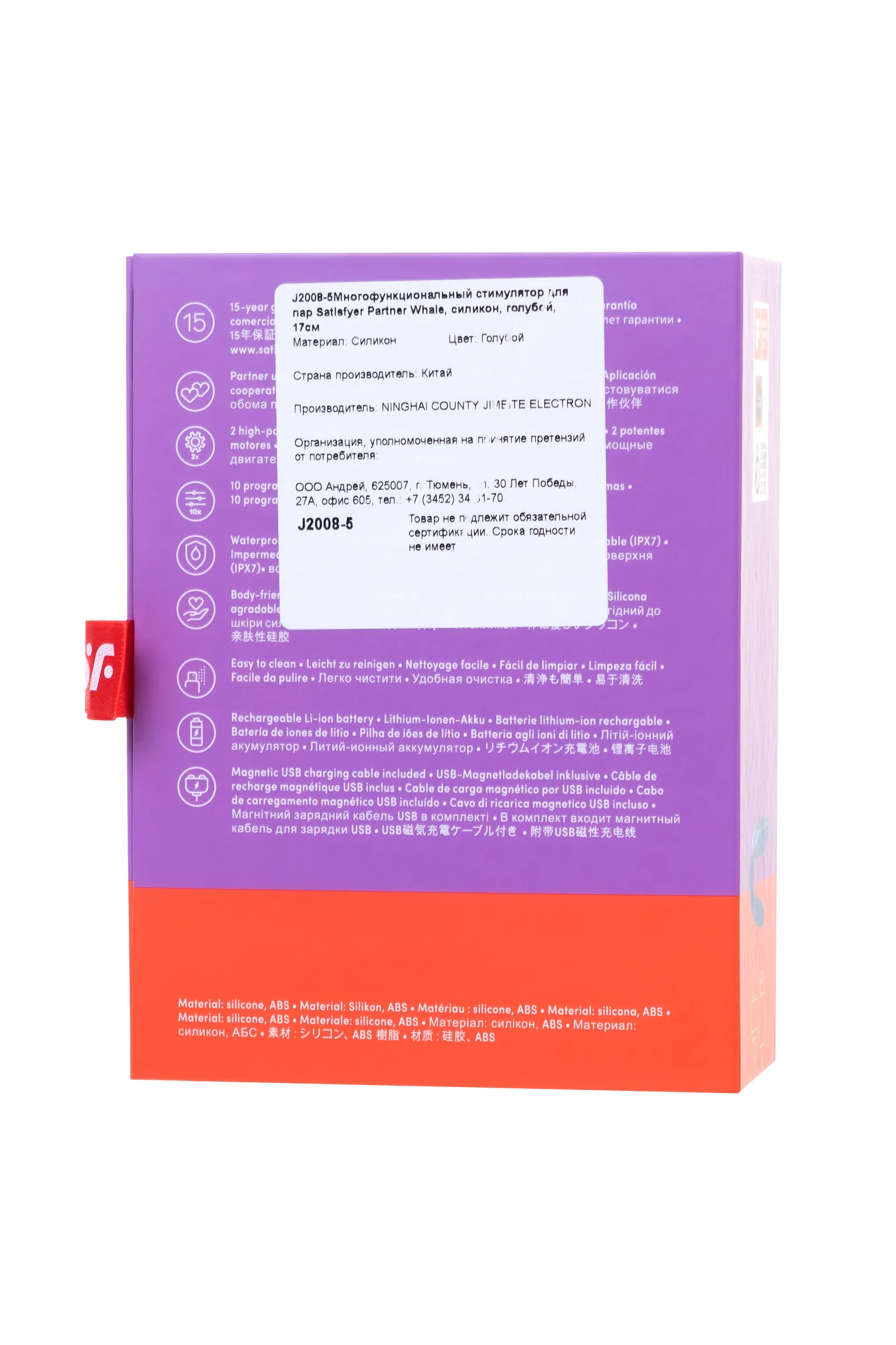 Вибратор Satisfyer Partner Whale создан специально для пар. Многофункциональная игрушка призвана разнообразить ощущения в паре во время интимной близости. Станьте еще ближе друг другу с помощью вибратора Partner Whale. Основная особенность игрушки это два моторчика, расположенных в разных концах. Один конец вводится во влагалище, оставляя место для мужчины, а второй остается снаружи и накрывает клитор. Таким образом, двойная вибрация передается на все эрогенные зоны обоих партнеров простым нажатием одной кнопки. 10 различных режимов вибрации, с которыми стимуляция клитора, зоны G и пениса приводит к ошеломительному результату и одновременным оргазмам. Усильте взаимное удовольствие во время занятий любовью, добавьте новых красок в свою сексуальную жизнь и освежите впечатления вместе с многофункциональным массажером Satisfyer Partner Whale. 10 режимов вибрации 2 мощных мотора Волнующий дизайн в виде кита Водонепроницаемость IPX7 Безопасный медицинский силикон Литий-ионный аккумулятор Магнитная USB-зарядка Производитель Германия