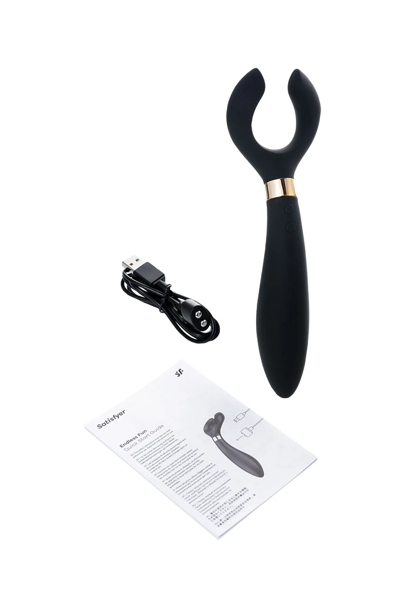 Многофункциональный вибратор Satisfyer Endless Fun — мастхэв для партнеров, которые привыкли доводить друг друга до оргазма. С этим устройством громкие эмоции не заставят себя долго ждать. З мощных мотора, вращающаяся на 180° головка и 29 вариантов применения делают Endless Fun настоящим универсалом — его можно использовать как массажер, вибратор и даже как мастурбатор. Мягкие «лапки» девайса умело стимулируют соски, клитор, половые губы, мошонку, головку и основание пениса во время прелюдии или в процессе соло-игр. Подвижная головка позволяет экспериментировать с ракурсами. А гладкий ствол игрушки с 10-ю режимами вибрации дает возможность насладиться возбуждающим проникновением и попробовать сценарий «секс втроем». Любая сексуальная идея, которую вы решите воплотить с Satisfyer Endless Fun, выведет ваше удовольствие на желанный уровень. Не удивляйтесь, если после этих интимных игр вы станете сильнее любить партнера. Бесшумный режим работы помогает держать в секрете свои шалости Полная водонепроницаемость гарантирует безопасность использования в воде Гипоаллергенный силикон не вызывает раздражений на коже 15 лет гарантии Вам нравится вместе открывать новые горизонты наслаждения? Тогда вооружитесь многофункциональным вибратором Satisfyer Endless Fun и подарите вашей паре совместный экстаз!