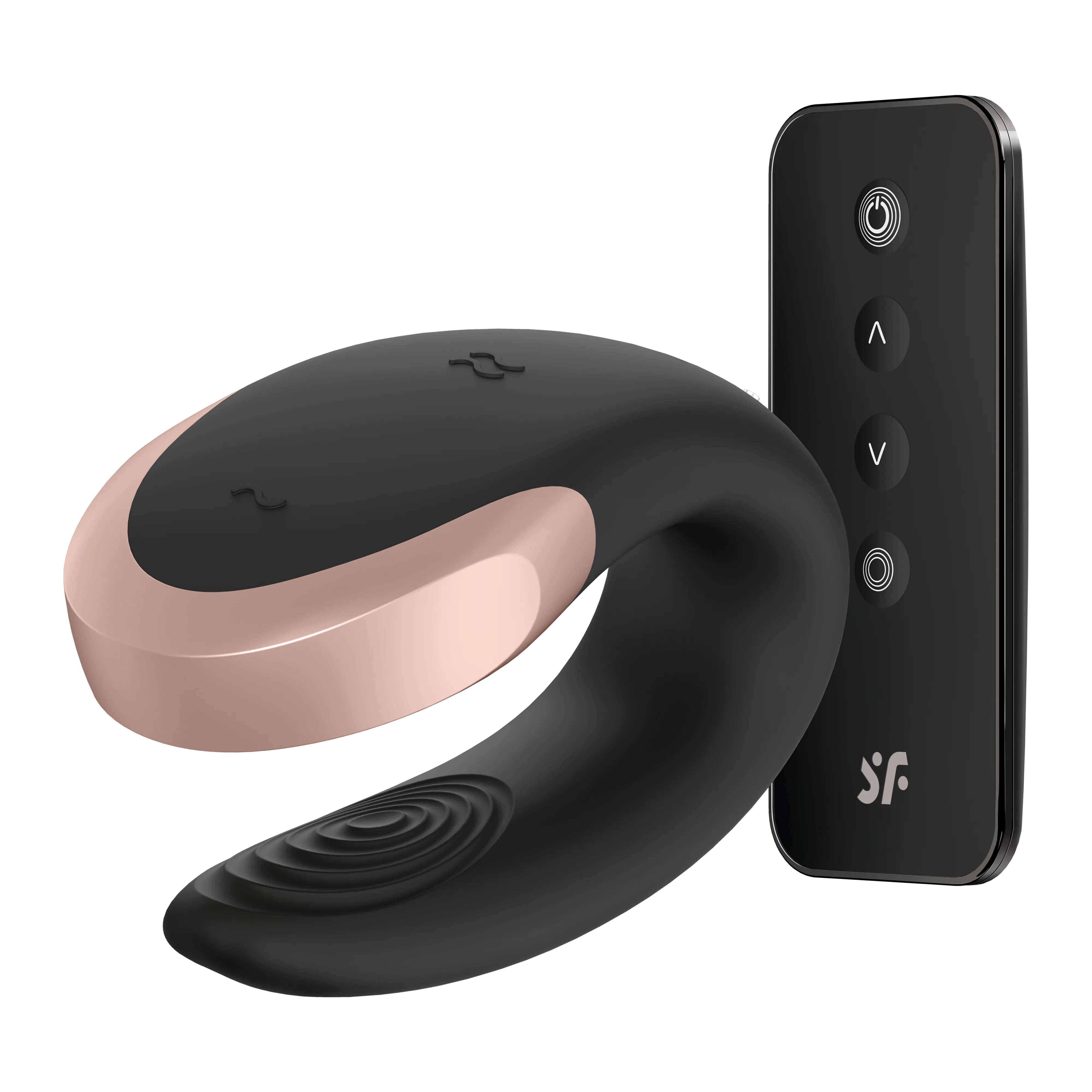 Этот роскошный вибратор для пар "Double Love" создан из мягкого силикона в сочетании с высококачественным драгоценным металлом. Удобный беспроводной пульт и приложение делает возможной игру на расстоянии и воплощение твоих фантазий! Этот парный вибратор с двумя моторами подкупает своей классической U-образной формой, которая побалует обоих партнеров мощными вибрациями. Слегка изогнутый стержень вводится вагинально и одновременно стимулирует точку G и пенис, а его верхняя часть также воздействует на клитор. Приятный для тела силикон очаровывает своей гладкостью.