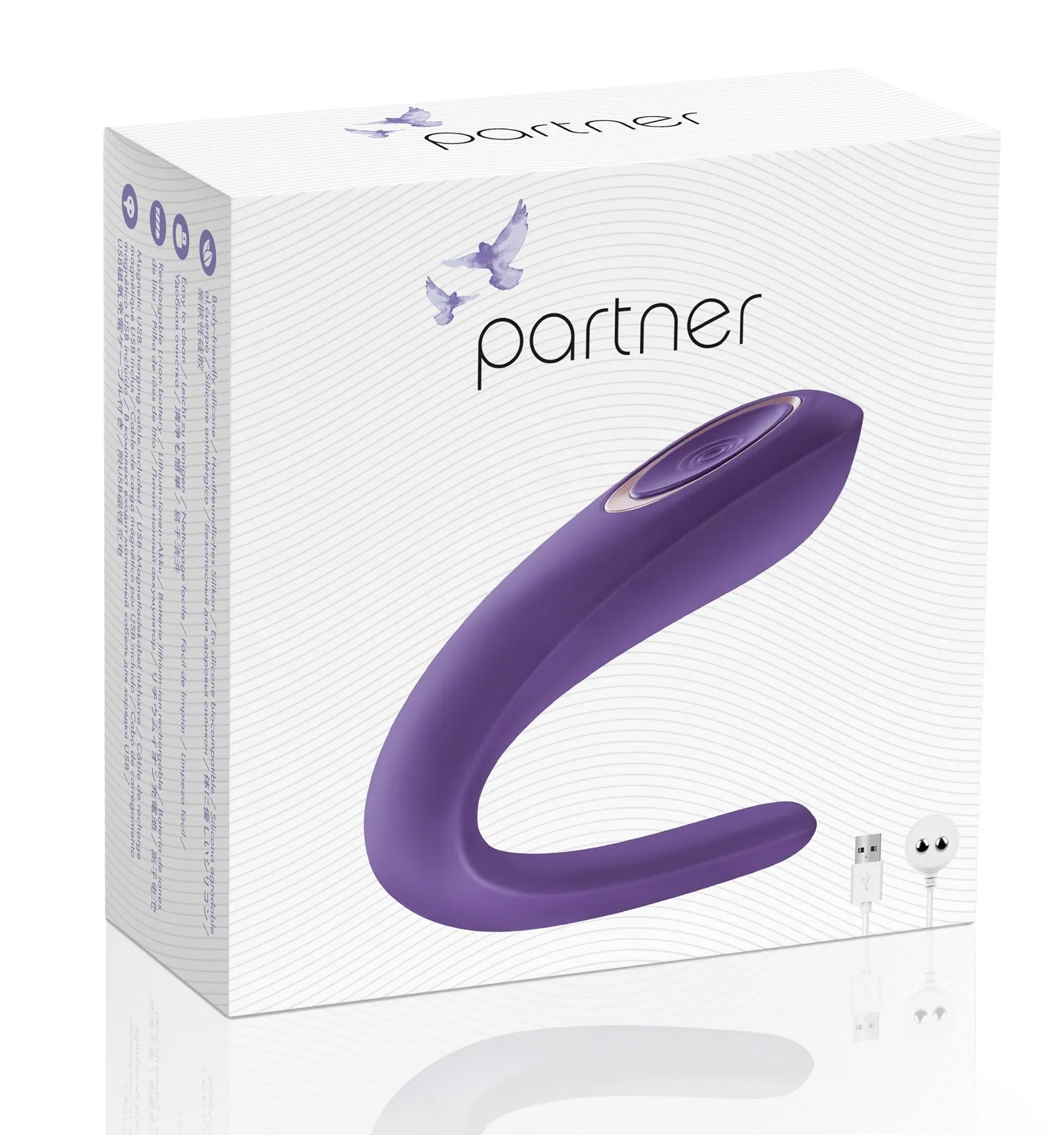 Partner сделан из высококачественного силикона - непористого и мягкого материала, имеющего бархатистую поверхность. Заряжается он при помощи магнитного USB кабеля и обеспечивает долгое время работы без подзарядки.