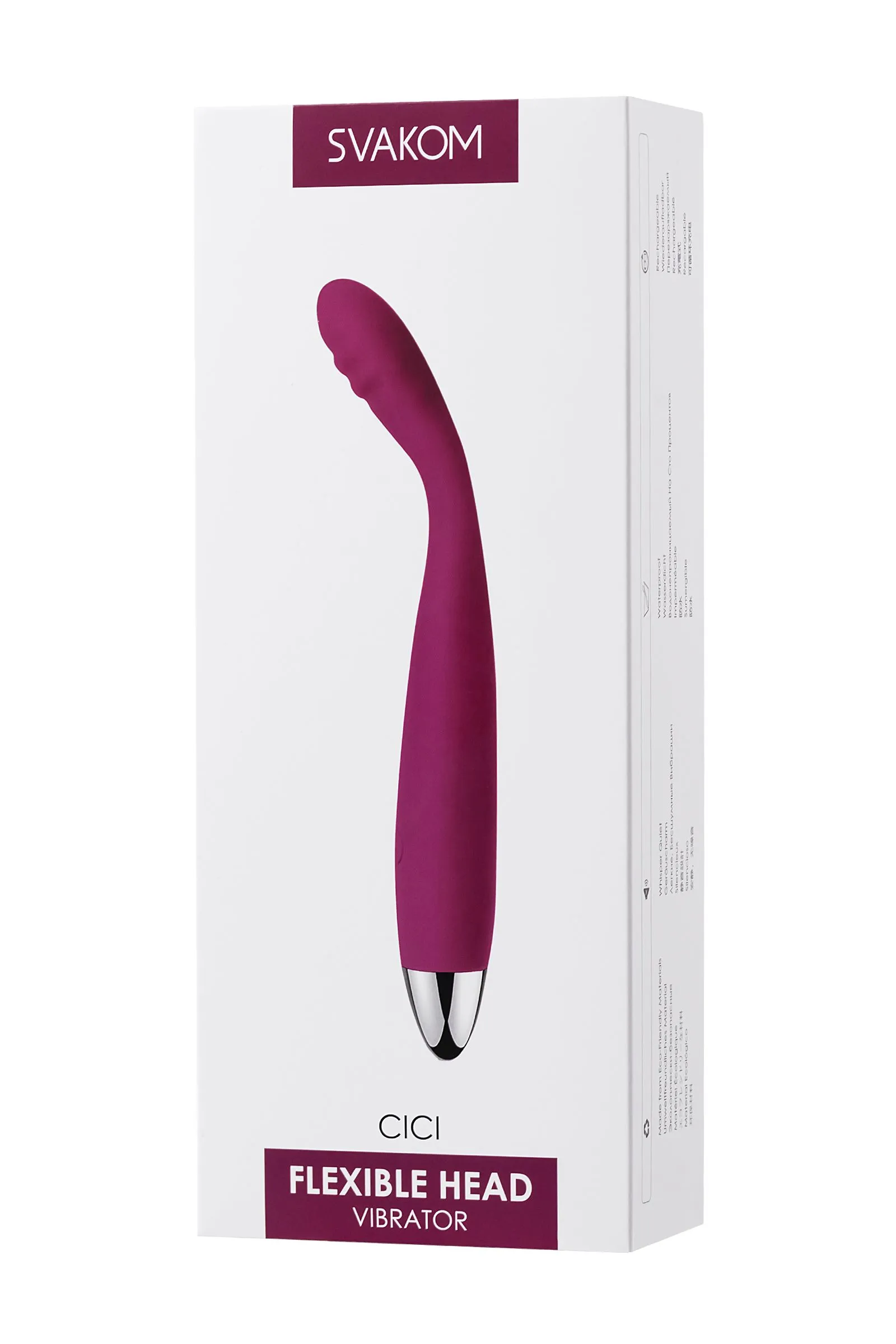 Глубокие знания женской анатомии и растяжка, достойная артиста New York City Ballet, позволяют вибратору Svakom Cici претендовать на главную роль профессионального стимулятора точки G и других эрогенных зон. • Гибкая головка может принимать удобный угол наклона и подстраиваться под любые анатомические особенности, упрощая поиск и стимуляцию точки G и точки U. Дополнительный рельеф усиливает удовольствие от каждого движения. • Мощный мотор расположен в головке и помогает точечно массировать эрогенные зоны. • Каждый из 6-и режимов вибрации имеет 5 уровней скорости, что дает возможность выбирать нужный темп интимной игры — от долгой и деликатной прелюдии до стремительного взрывного финала. • Благодаря небольшому диаметру игрушку можно использовать не только соло, но и с партнером. Например, для реализации сценария секса втроем. • Вибратор водонепроницаем, поэтому расслабляющая ванна не станет помехой для получения разрядки. Вибратор Svakom Cici точно знает, чего хочет женщина.