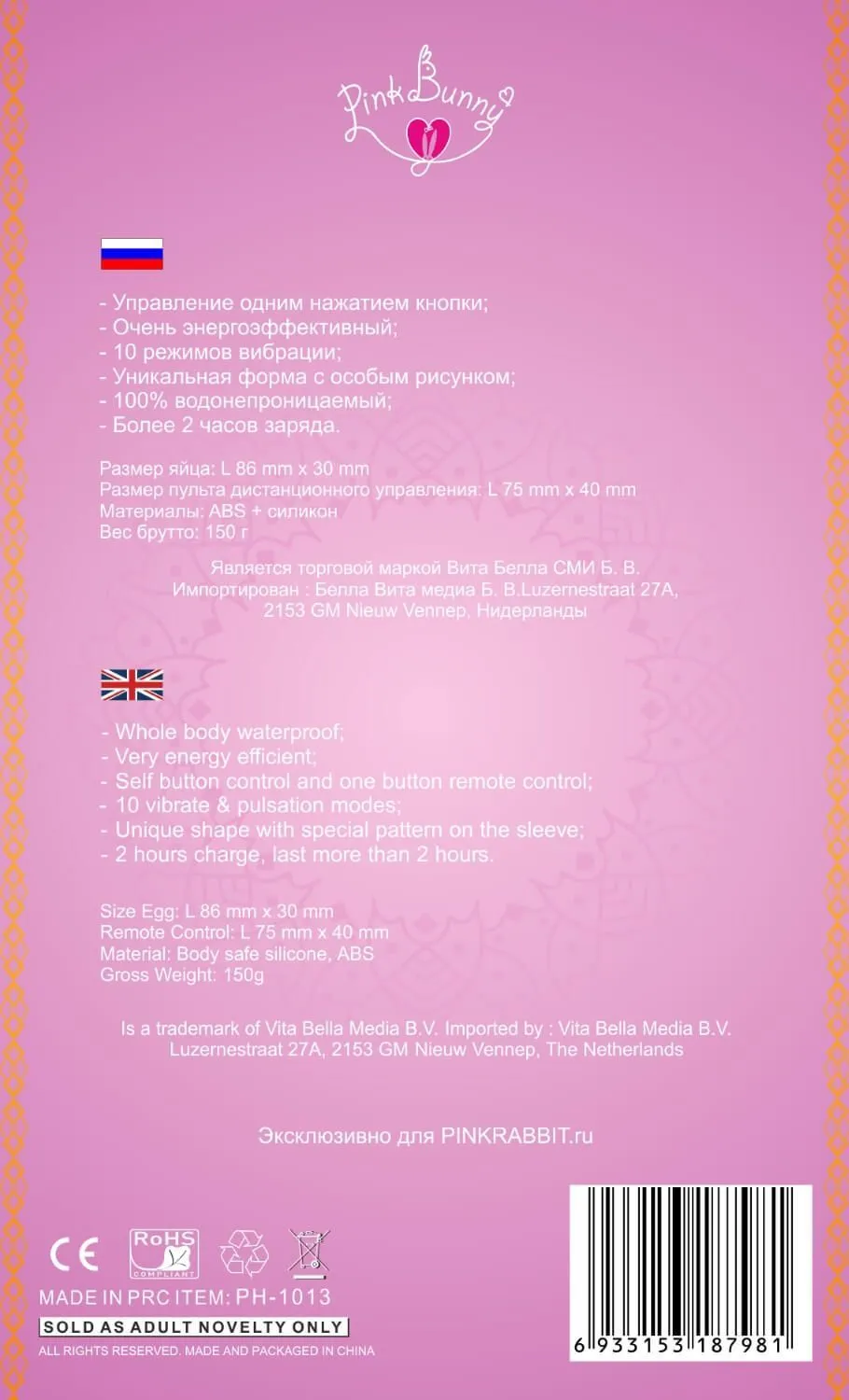 —Виброяйцо Pink Bunny Lust Roze, розовое