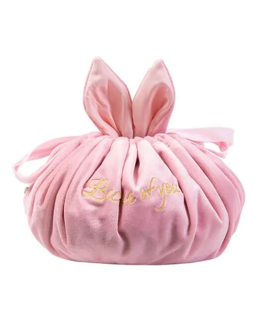 Очаровательная розовая сумка с ушками, на сборке, с двумя ручками.
